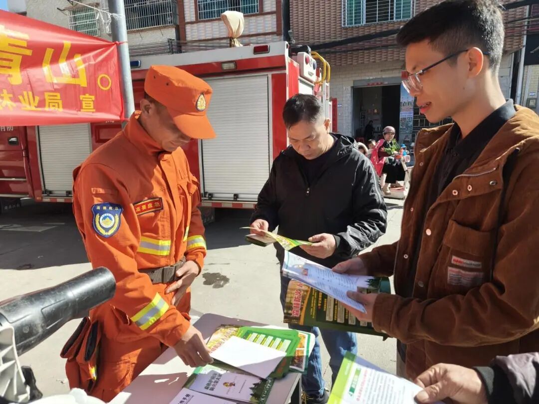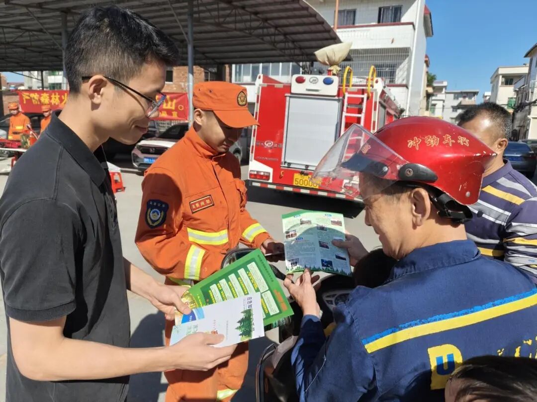 在蚬岗镇定点防火点和山口村林区出入口,消防员采取“定点宣传+流动巡查”的模式,通过装备讲解,向护林员、群众直观展示风力灭火机、灭火棍等专业设备的功能与使用方法;并派发森林防灭火宣传单,用通俗易懂的语言向过往村民普及“进山不带火、林区不吸烟”等安全知识。